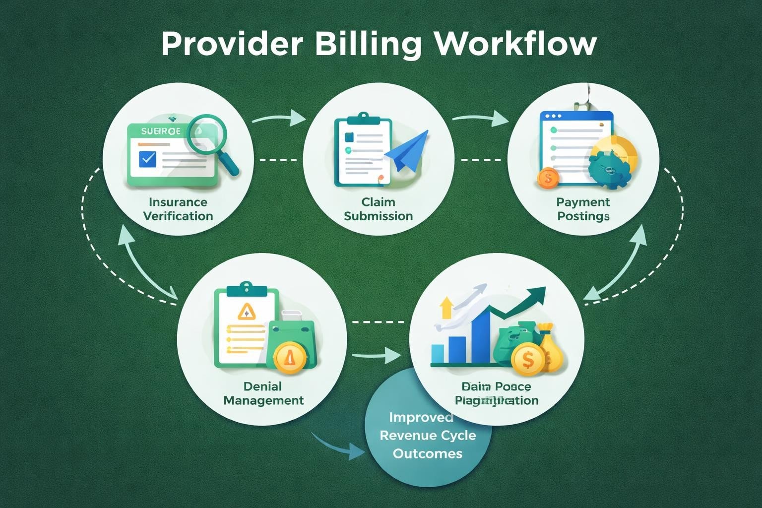 Provider billing does not operate in isolation. It represents one component of the broader revenue cycle, connecting to patient access, clinical documentation, charge capture, and collections. Optimizing billing performance requires coordination across all revenue cycle functions.